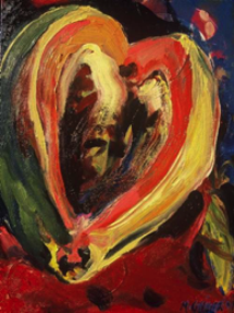 “I am not afraid of colour, whether using it to express joy, or the darker moments in my life. Vibrant colour heightens the emotional impact and meaning of my paintings. It is like the spinal cord, which runs through all my work.”